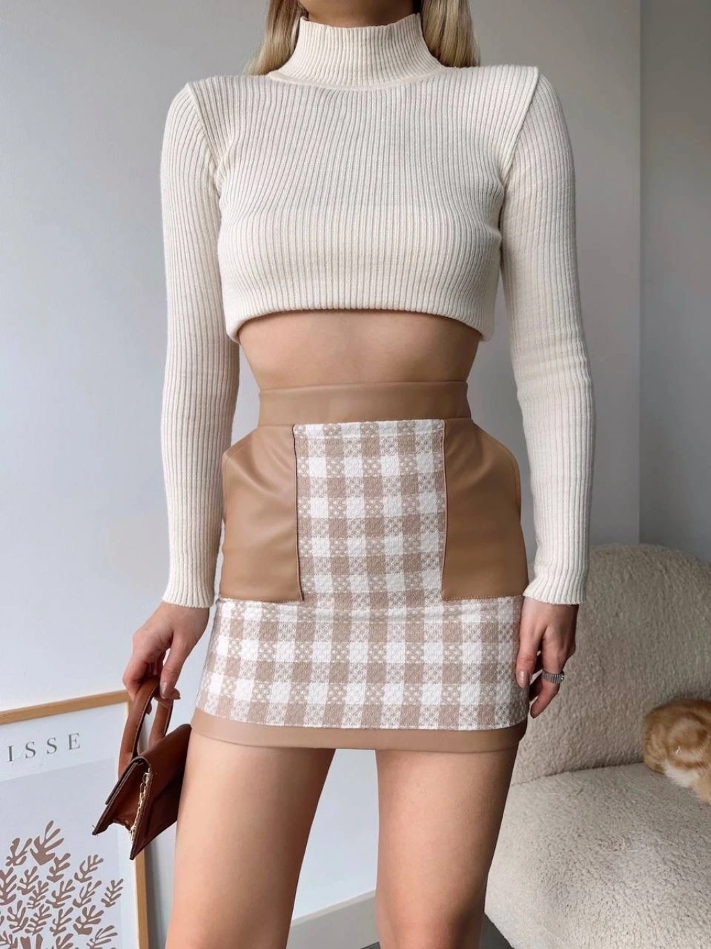 Deri cepleri eteğe modern bir hava katar.