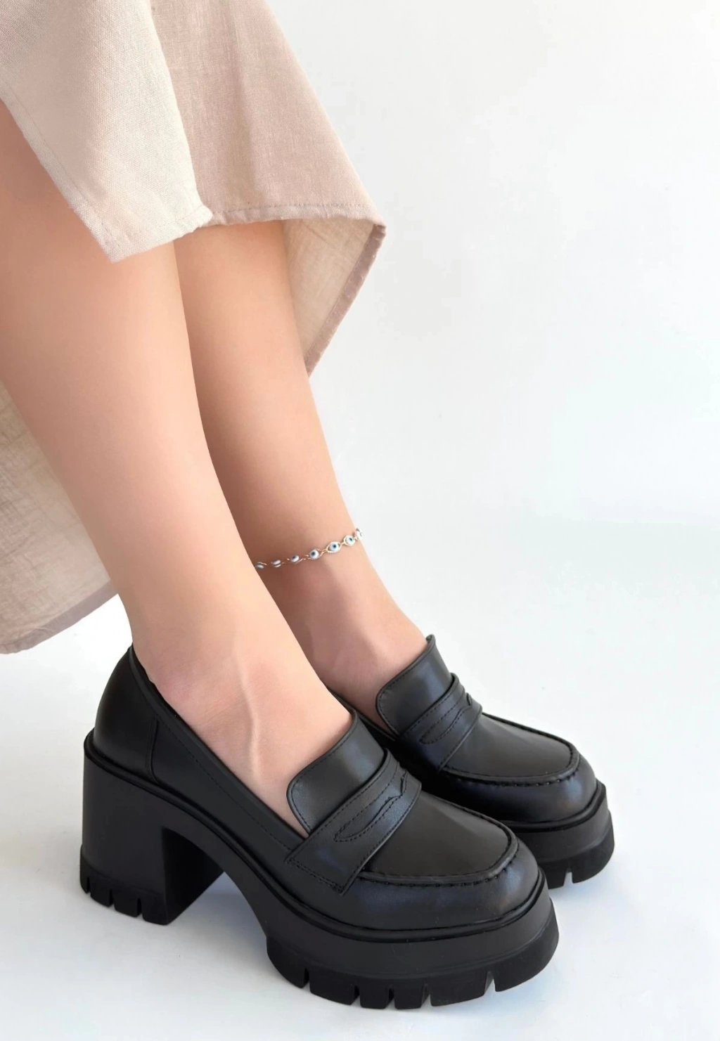 Janes Siyah Cilt Dolgu Topuk Ayakkabı