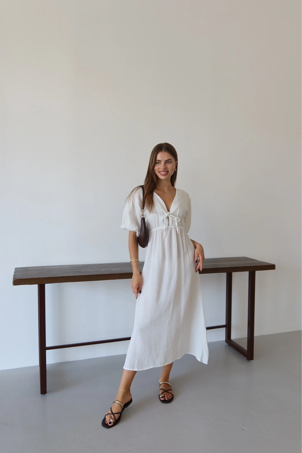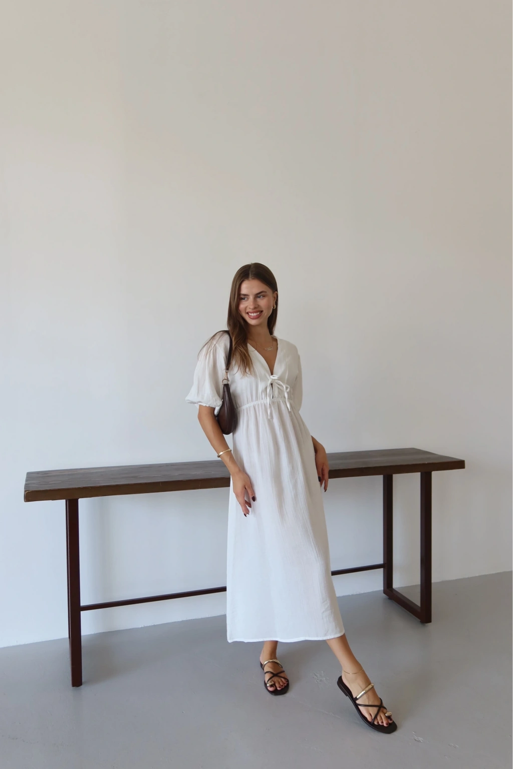 Kısa kollu müslin elbise beyaz pt