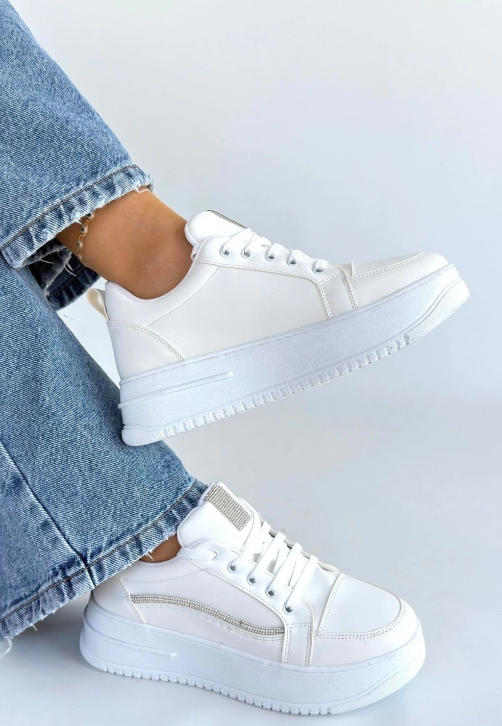 Natte Beyaz Cilt Bağcıklı Spor Ayakkabı
