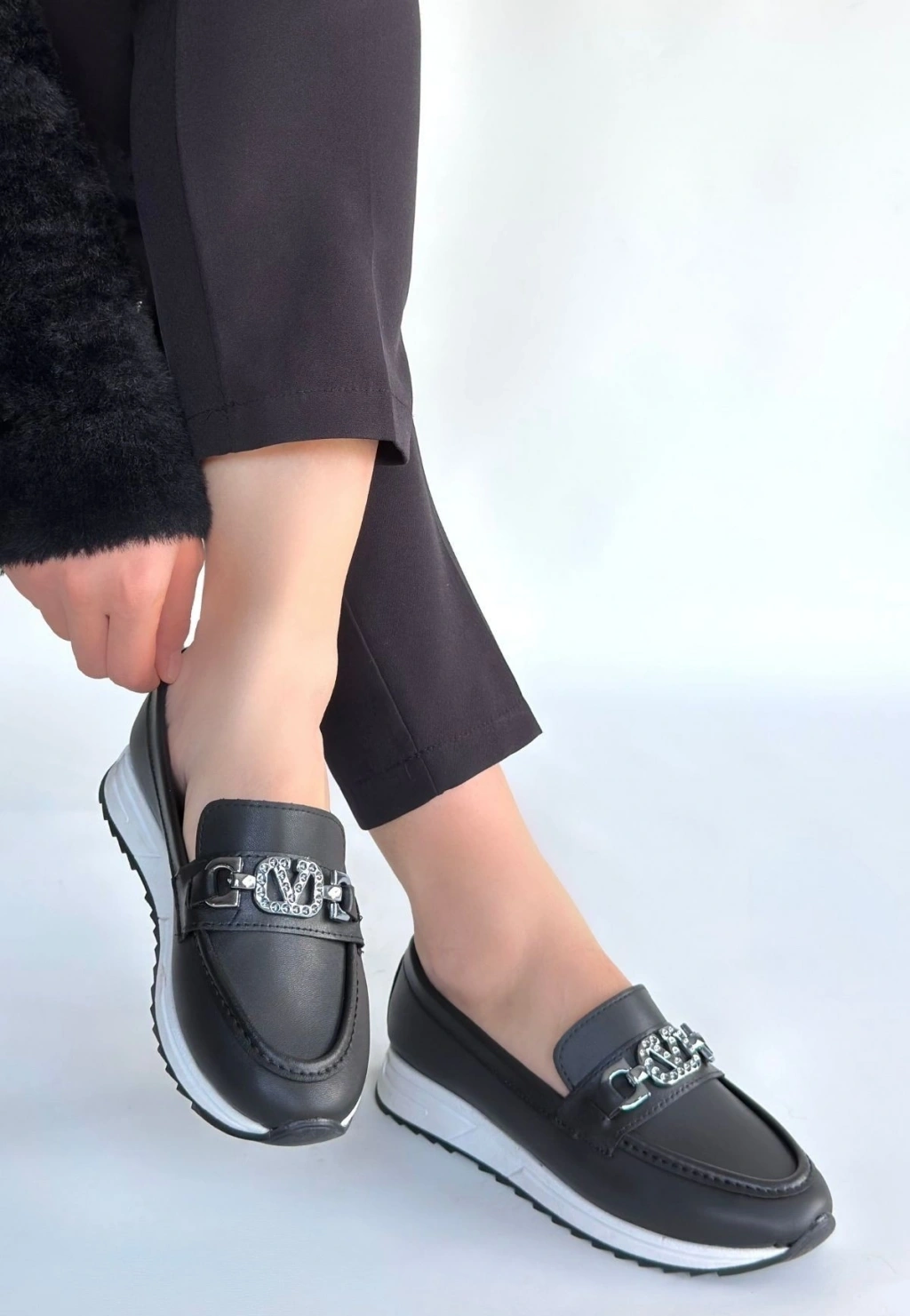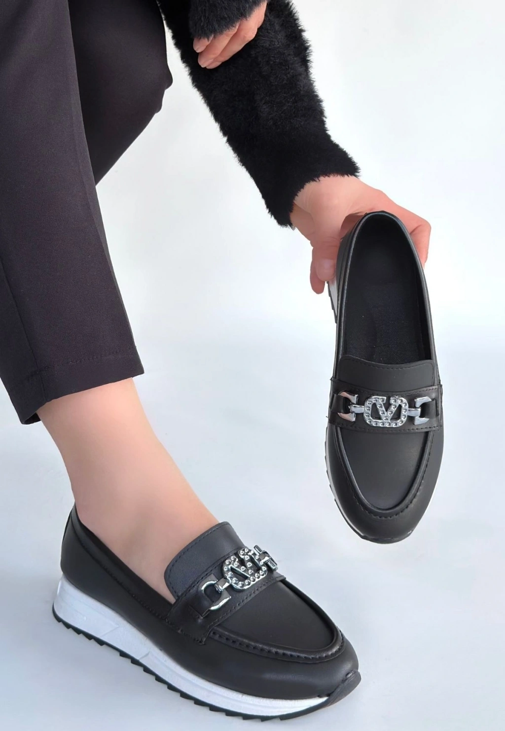 Otra Siyah Cilt Babet Ayakkabı