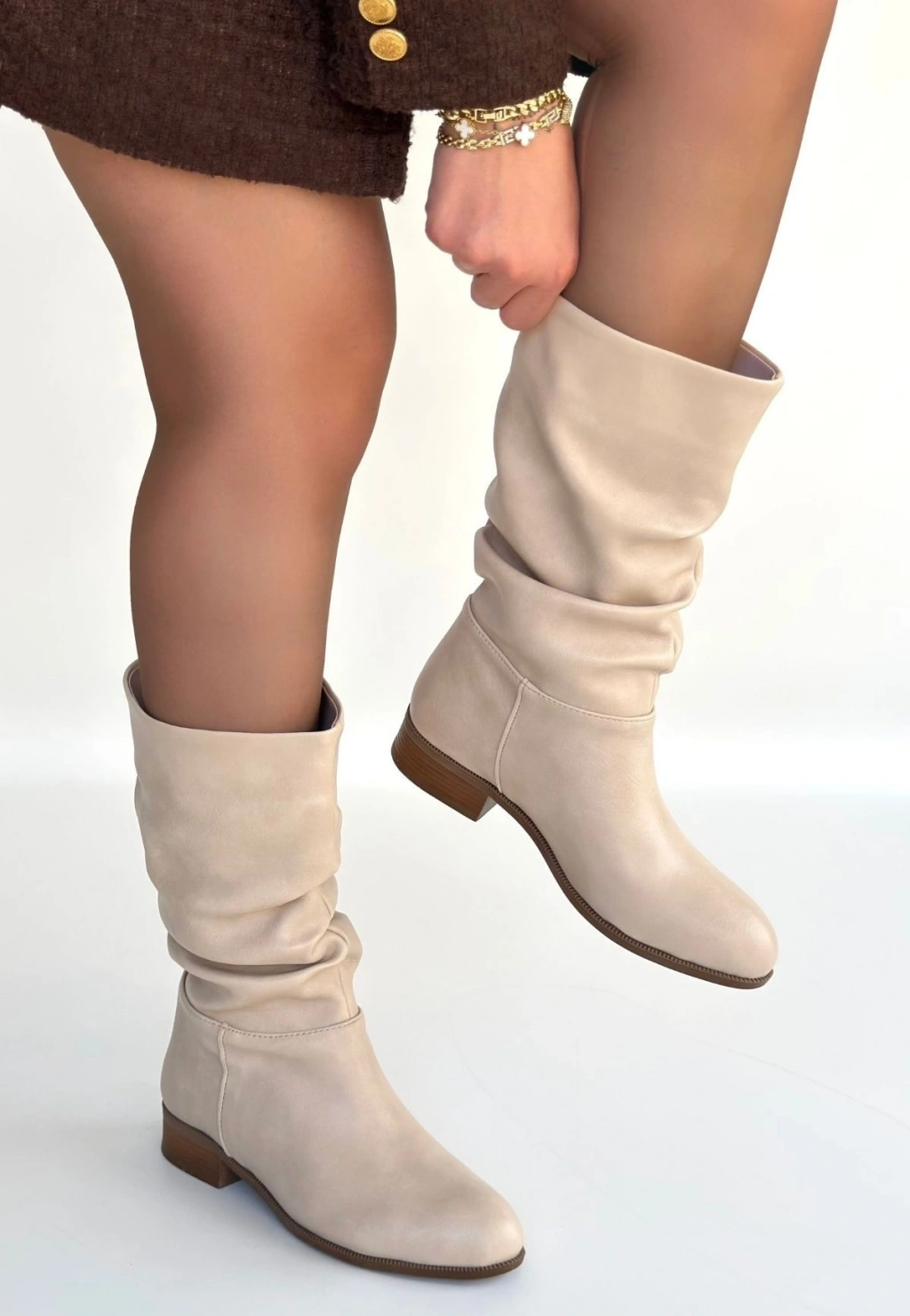 Plod Bej Cilt Körüklü Çizme