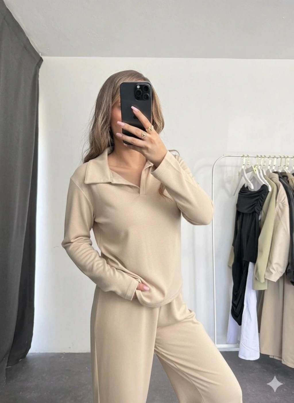 Bej rengiyle şıklığı ve rahatlığı bir arada sunan Polo Yaka Alt Üst Kollu Modal Takım, gardırobunuzun vazgeçilmezi olmaya aday!