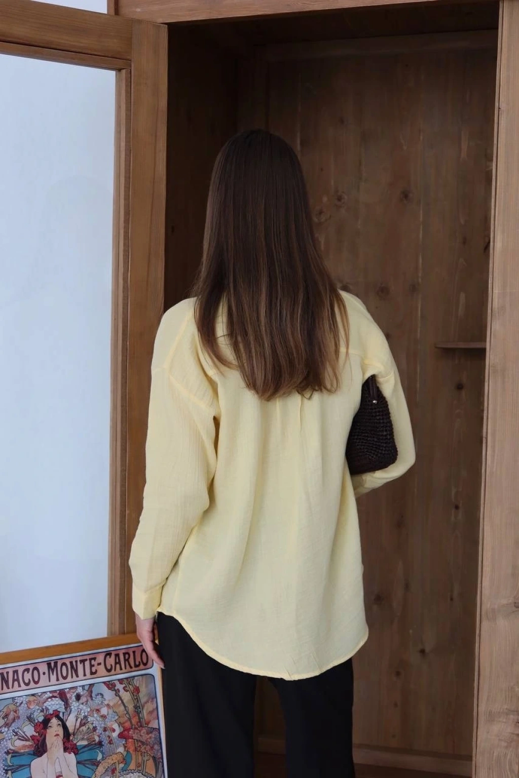 - Sarı rengiyle dikkat çeken gömlek, yaz aylarında ferah ve şık bir görünüm sunar.