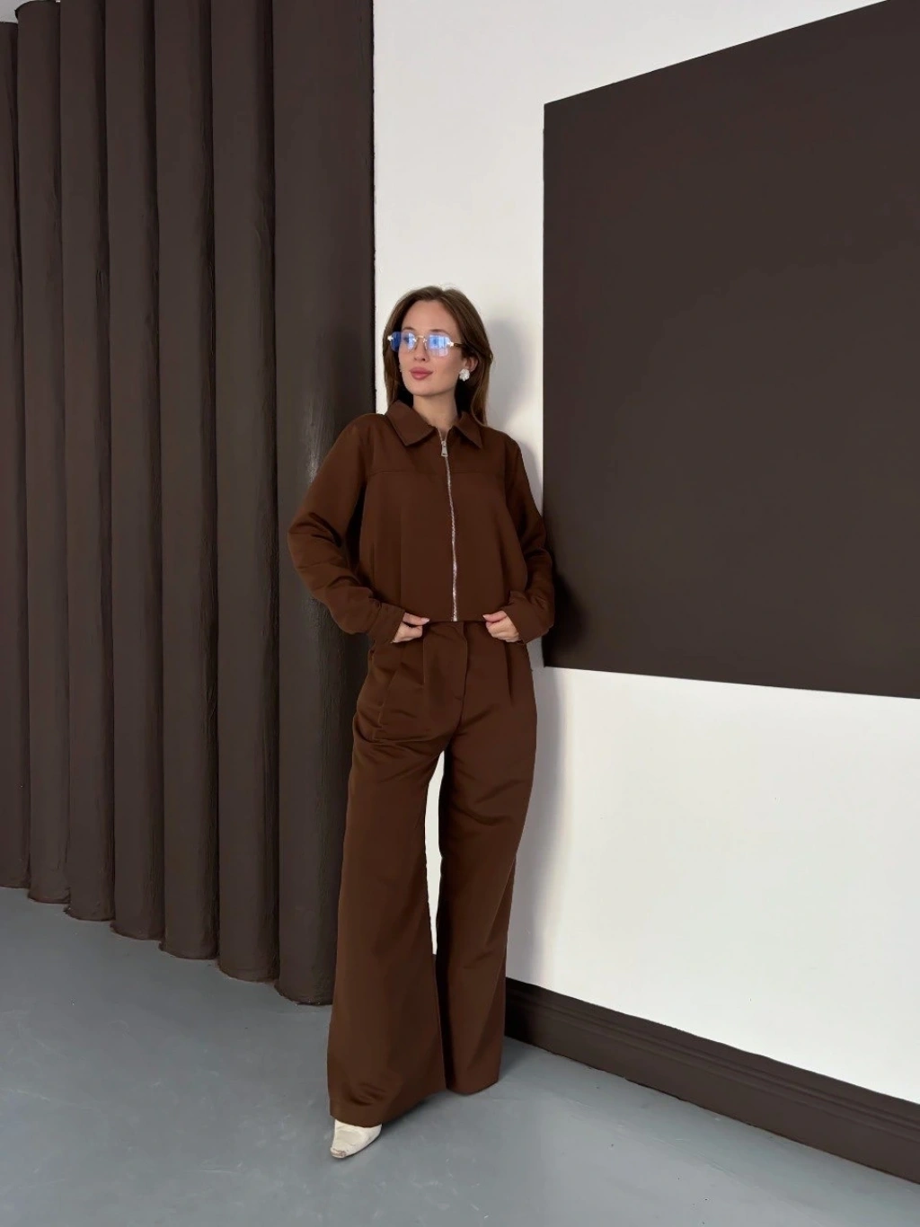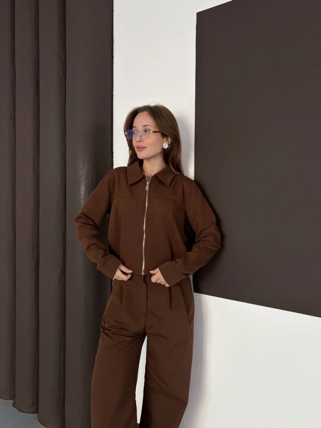 Trenç takım alt üst kahve ons