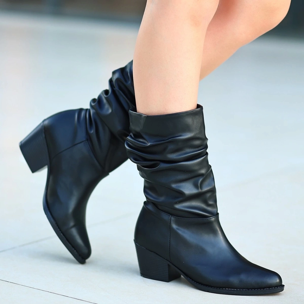 Yior Siyah Cilt Topuklu Bot